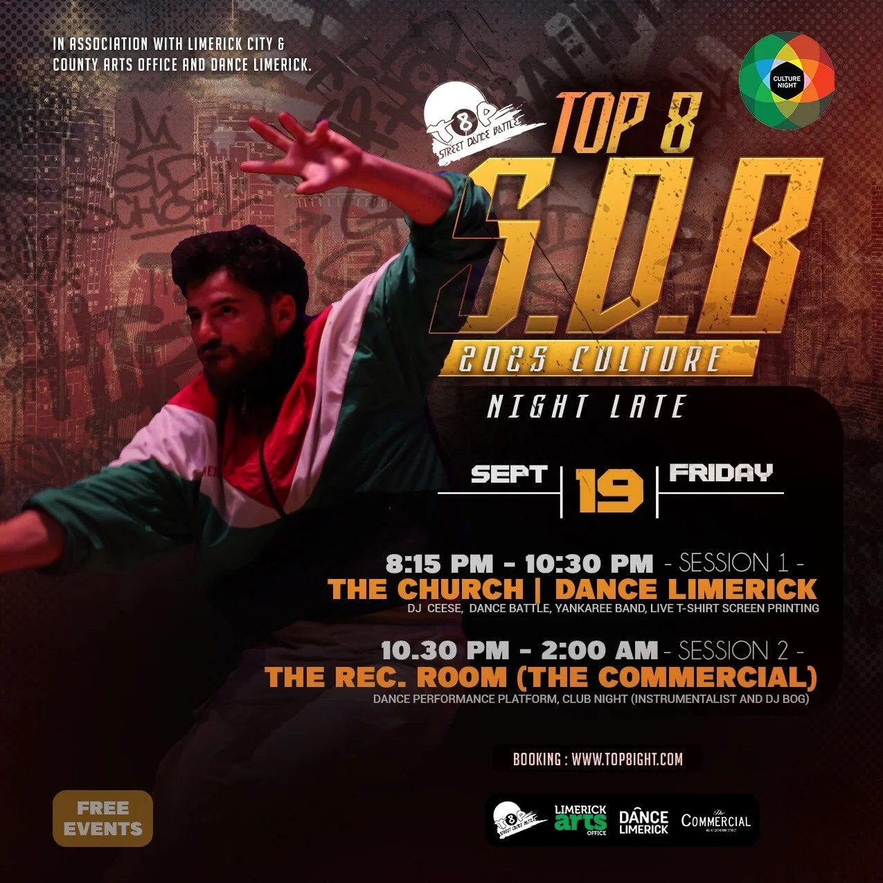 EVENT TICKETS Tickets CULTURE NIGHT €0.00 Add To Cart Added! ALL 3 WORKSHOPS Sale Price: €25.00 Original Price: €30.00 Sale Add To Cart Added! SHOW YOUR FLOW TICKETS ONLY €7.00 Sold Out Sold Out Added! Street Dance Workshops at Drop Studios €10.00 Add To Cart Added!